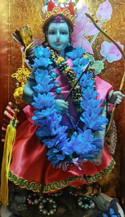 Sri Krishna came into this world as Lord Rama Chandra about a million years ago. The sage Sri Valmiki wrote down the life story of Lord Rama in the epic Ramayana. Lord Rama’s color was green like grass (Photo: Jishnu das