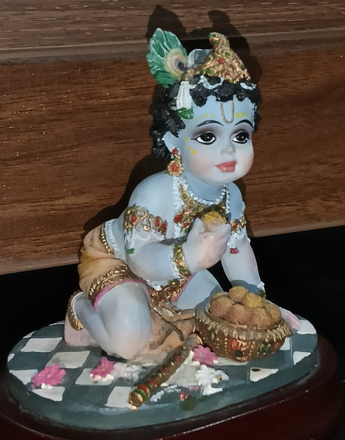 Photo top: Naughty Krishna holding a piece of candy (Jishnu Das)